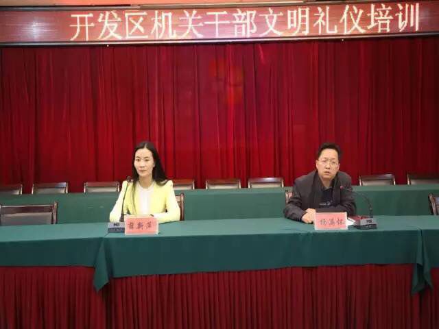 10月13日,三门峡市职业技术学院yl23411薛新萍副教授应邀为开发区管委会举办“开发区机关干部礼仪知识培训班”,来自管委会机关副科级以上干部、各单位办公室主任、新入职人员以及管委会办公室全体工作人员共计130余人进行文明礼仪相关知识培训。