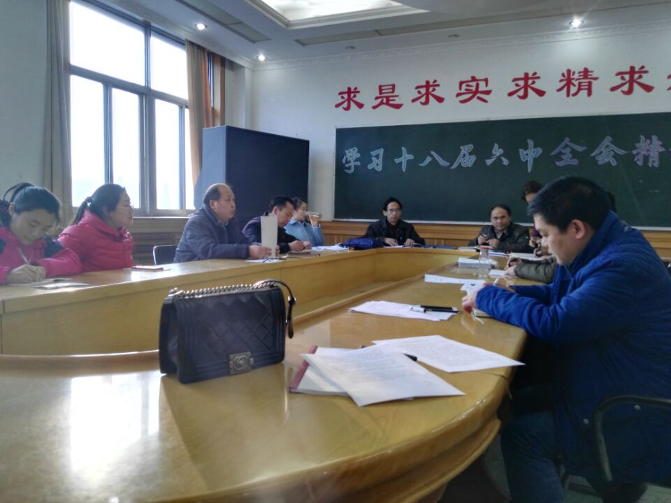 樊卫兵首先就六中全会精神作了发言。党的十八届六中全会于2016年10月24日至27日在北京召开。此次会议表明了中共中央坚定不移推进全面从严治党的政治决心,释放出进一步加强党的制度建设的明确信号。六中全会之前,央视播放了电视专题片《永远在路上》,彰显出党中央对腐败的零容忍和彻底反腐的坚强决心。习总书记振聋发聩的话语不时回荡耳边:“不是没有掂量过。但我们认准了党的宗旨,认准了人民的期待”。