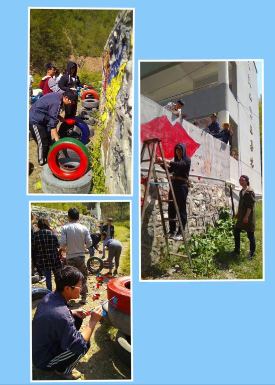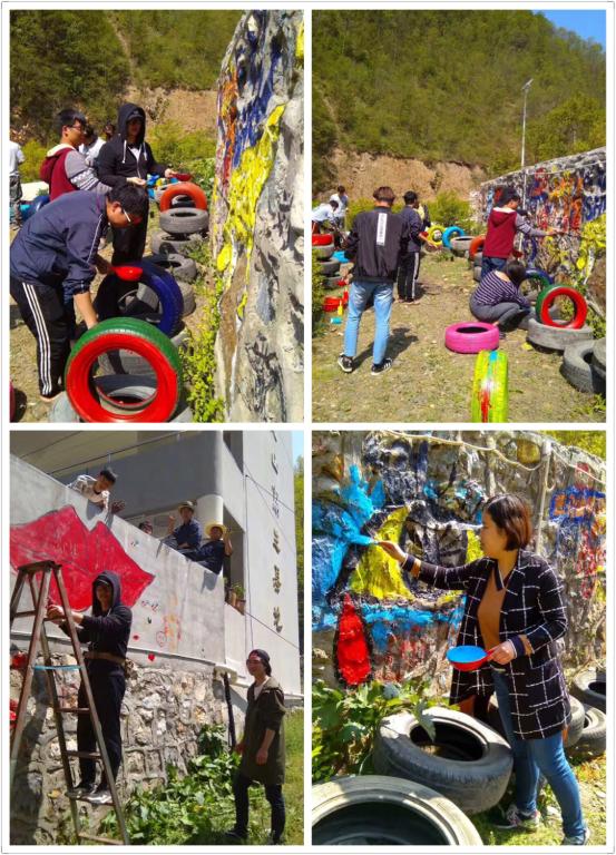 在这短短的两周实习时间里,实习员工深深被双槐树的人文地貌、地域风格特点所吸引。经过两天的熟悉环境后,同学们便满怀激情开始用自己所学的专业知识对大自然进行认真的描绘。在老师的耐心辅导下,员工们经过不懈努力,创作出了很多优秀的写生作品,并在实践中学到了很多在校内课上学不到的知识,艺术认识和审美能力都有了很大的提高。在完成教学任务的同时,师生们在九龙山庄还开展了社会服务活动,进行了当地美术墙的设计和描绘,充分锻炼了员工们的实践能力。这道涂鸦墙也成为了九龙山庄的一道靓丽的风景线,为这次写生任务画上了一个圆满的句号。(供稿人:崔文新)