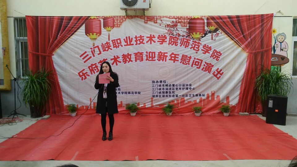 三门峡市崤函爱心公益副会长赵大芳首先致辞祝愿所有老人健康长寿,晚年快乐。三门峡市湖滨区老年护理中心主任张晓娟代表入住老人向专程来参加活动的各级领导、嘉宾以及关心和支持老龄工作的各届人士致辞。节目开始带来的《书简舞》让人在浮躁的生活中安静下来;充满活力的一群人带来的《舞蹈串烧》更是吸人眼球;天籁般的嗓音唱响了《青藏高原》;与爷爷奶奶们合唱的《没有共产党就没有新中国》是怀念过去的味道;《国家》手语彰显出中国文化的博大精深。最后,所有领导及嘉宾上台与演出者拍照留念。演出获得圆满成功。