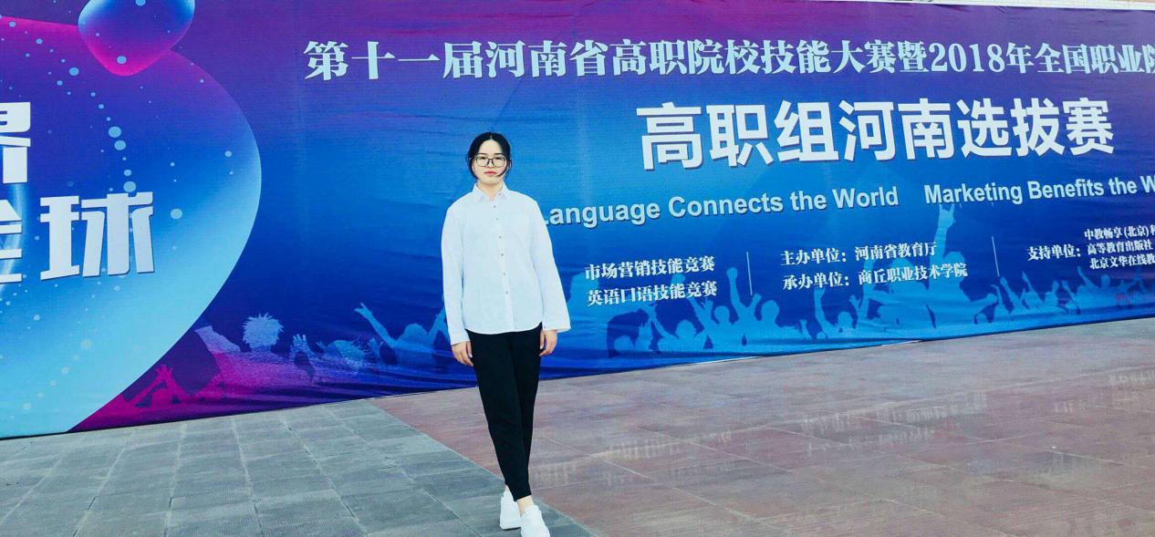 2018年河南省职业院校技能大赛英语口语赛项于4月9日在商丘职业技术学院举行。yl23411商务英语专业16级员工袁静宜在比赛中发挥出色,荣获专业组二等奖。