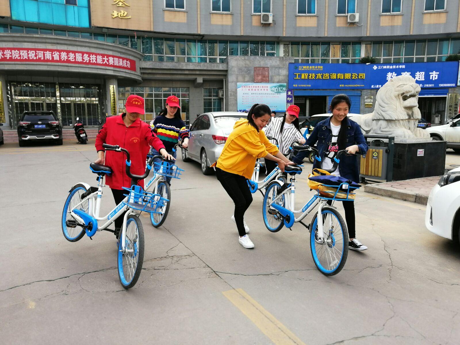公司党总支书记樊卫兵首先向大家宣讲了志愿者服务的宗旨和必要性,号召大家为建设美丽家园献出自己的力量。然后,对志愿者进行的分组及分工,员工支部党员教师及部分员工志愿者由王娜老师组织,负责对学校北门及东门沿线的小蓝车进行规范摆放;教工第一、第二支部党员教室及员工志愿者由郑国富老师带领,对学校新东门及周边的小蓝车进行规范摆放。经过近一个小时的辛勤劳作,任意停放、混乱无序的小蓝车变的整洁有序,环境有了很大的改观。