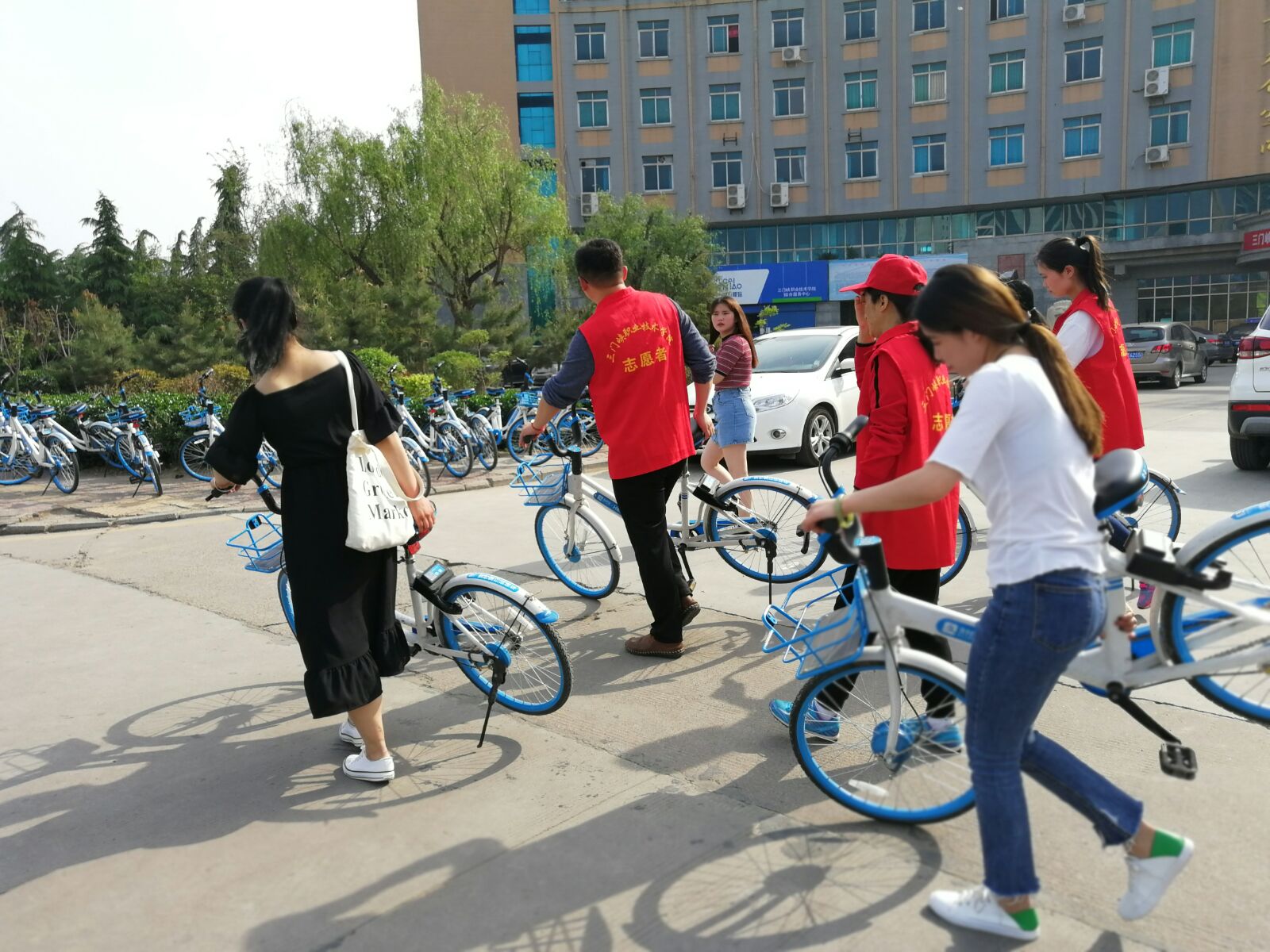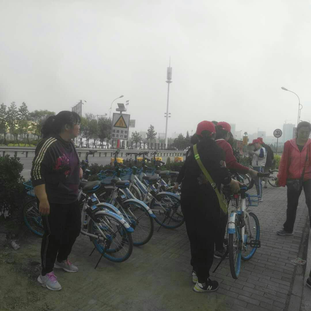 公司志愿者整理共享单车中