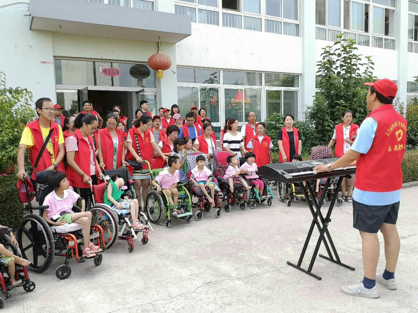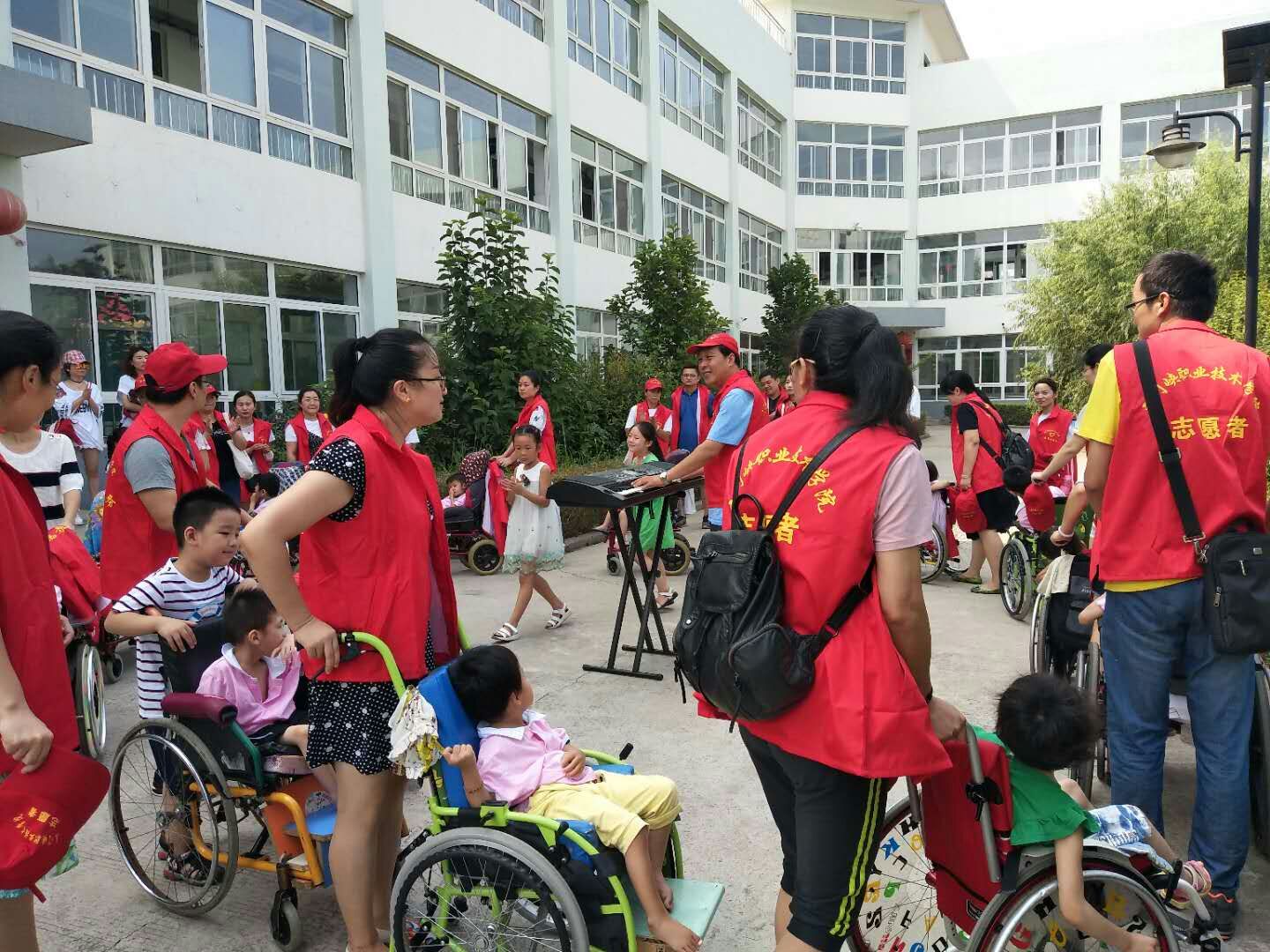 楼下空地上,人影憧憧,人声沸腾,一片祥和、欢快气息。音乐专业教师架起了电子琴,老师们和孩子们自由欢快地演起了节目,这些孩子们或在老师们的怀抱里,或在轮椅上,或在节目的队列里,都不由自主地汇入到了歌声和舞蹈的欢乐中。在二楼,伍艳妮等老师协助工作人员把四五间教室打扫得干干净净,把桌子、玻璃擦得亮亮堂堂,他们热的出了几身汗,可他们心里却乐滋滋的。