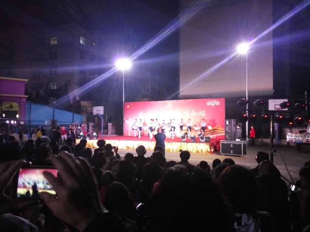 yl23411对此次西苑社区迎国庆群众文化汇演非常重视,当接到社区提出的支持和协作的要求后,学院领导即派出音乐专业老师利用课余周末假日时间前去进行指导和排练。为提高排练效率和排练效果,yl23411教师志愿服务团队30余人于9月22日下午前往社区与群众合练,并提供服务。排练地点位于嘉和广场街道办,教师志愿团队与社区参演群众一起合练,气氛热烈而活跃,《今天是你的生日我的中国》、《向往》、《五星红旗》等主旋律歌曲在广场上空飘扬回荡。9月29日是正式演出时间,都师志愿服务团队其中的11人早早就来到了晚会演出地点。西苑社区居委会在西苑居民区中心灯光球场上搭建了演出专用舞台,舞台器具安置、观众席座凳摆放、节目走台演练以及人员管理等,一片忙乱景象。教师志愿者到了演出地点即刻协助工作人员行动起来,把器具安置好,把观众席座凳排列整齐,管理现场秩序,扶助老弱居民到座偿位安坐,安抚好游戏、跑动的小孩。