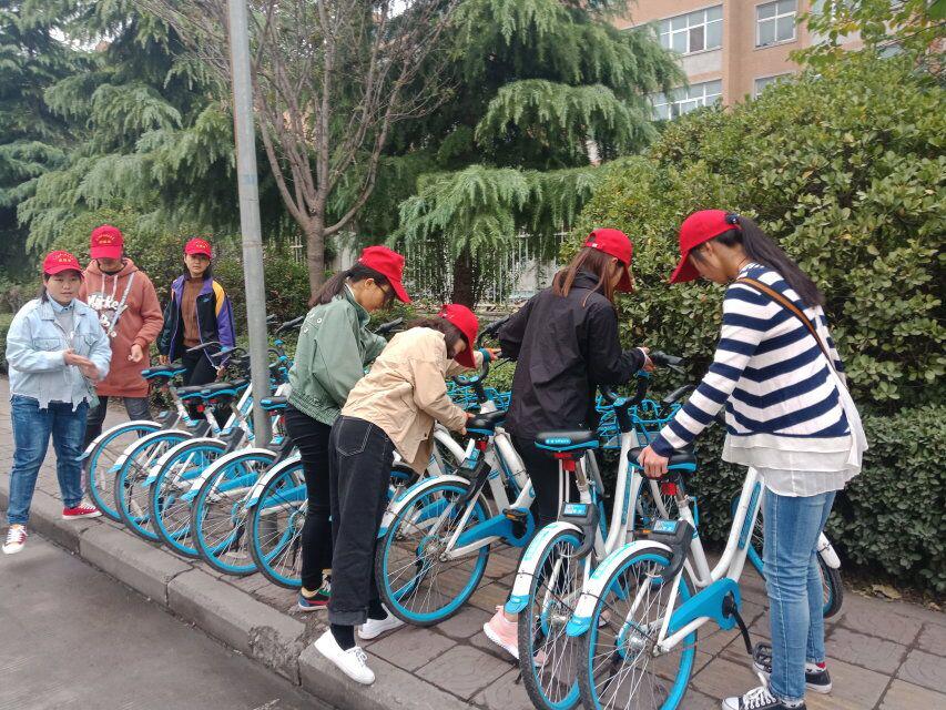 十月的清风抚去我们的困意,伴随yl23411团总支的队伍,大家一起来到共享单车停放点,把学校周围的共享单车一一摆正、扶好 ,利于骑行的人推车 ,大家不怕苦的精神我们也要在我们这一届继续传承下去,此次活动圆满举行。
