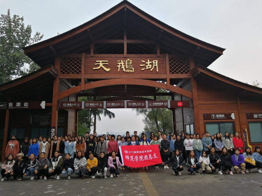 在秋雾朦胧中 ,团总支成员们脚踩昨晚秋雨留下的印迹,在落叶的缤纷中,迈着轻盈的步伐。就这样在秋风的催促下,到达了心中期望已久的天鹅湖。眼前这一刻的天鹅湖在仿佛向我们展现出了自已最美的一面,天鹅点缀着湖面与南飞的大雁交相呼应着,水中的鱼儿迎浪跳出水面在空中划过一道道轨迹,好像在替天鹅湖像我们问好一般,如比宁静和谐的她,如同少女一般楚楚动人。我们团总支拍下了和她最美好的合影,最后我们放慢脚步,轻轻退场,本次天鹅湖拉练活动圆满结束。