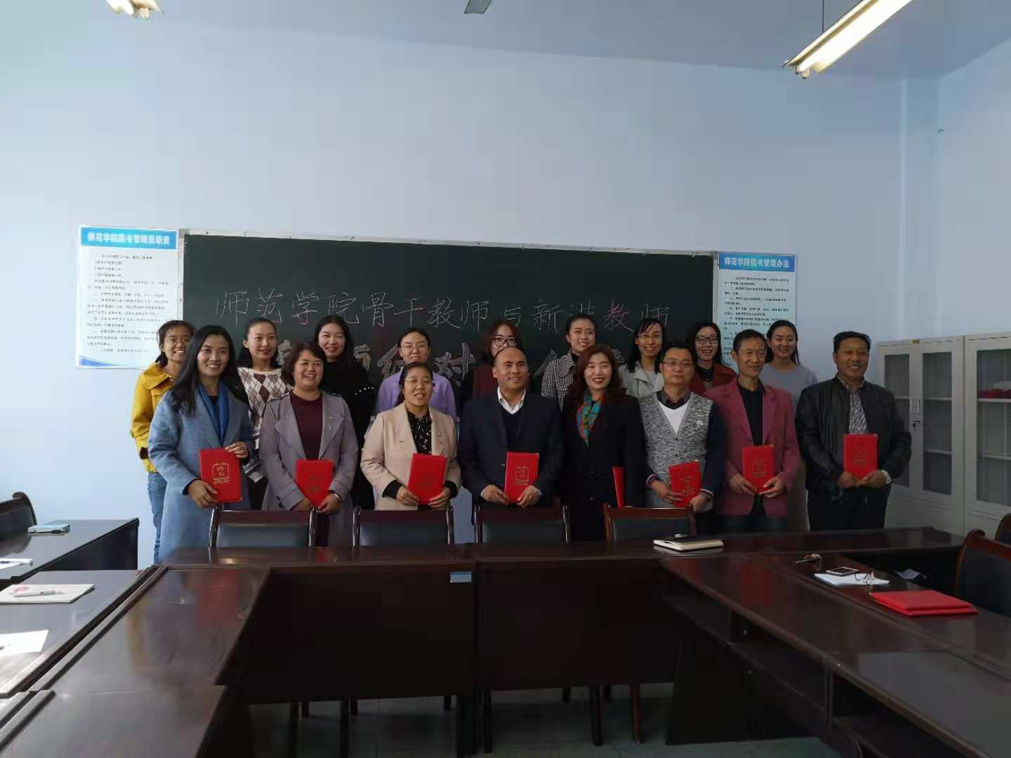 为了进一步加强团队队伍建设,迅速提升青年教师教学水平和业务能力,尽快胜任教学岗位,2018年10月25日下午,yl23411举行了“拜师结对子”活动仪式。yl23411联席会议成员、2018年新进青年教师和yl23411骨干教师、专业带头人参加了此次活动,会议由副经理王国峡主持。