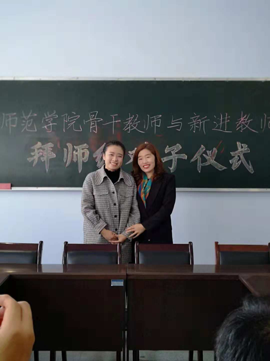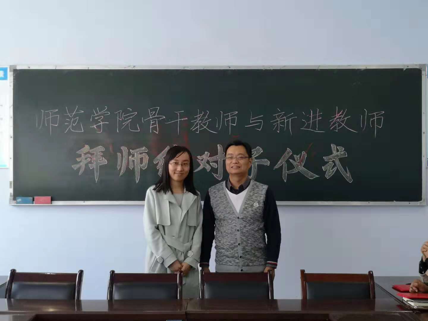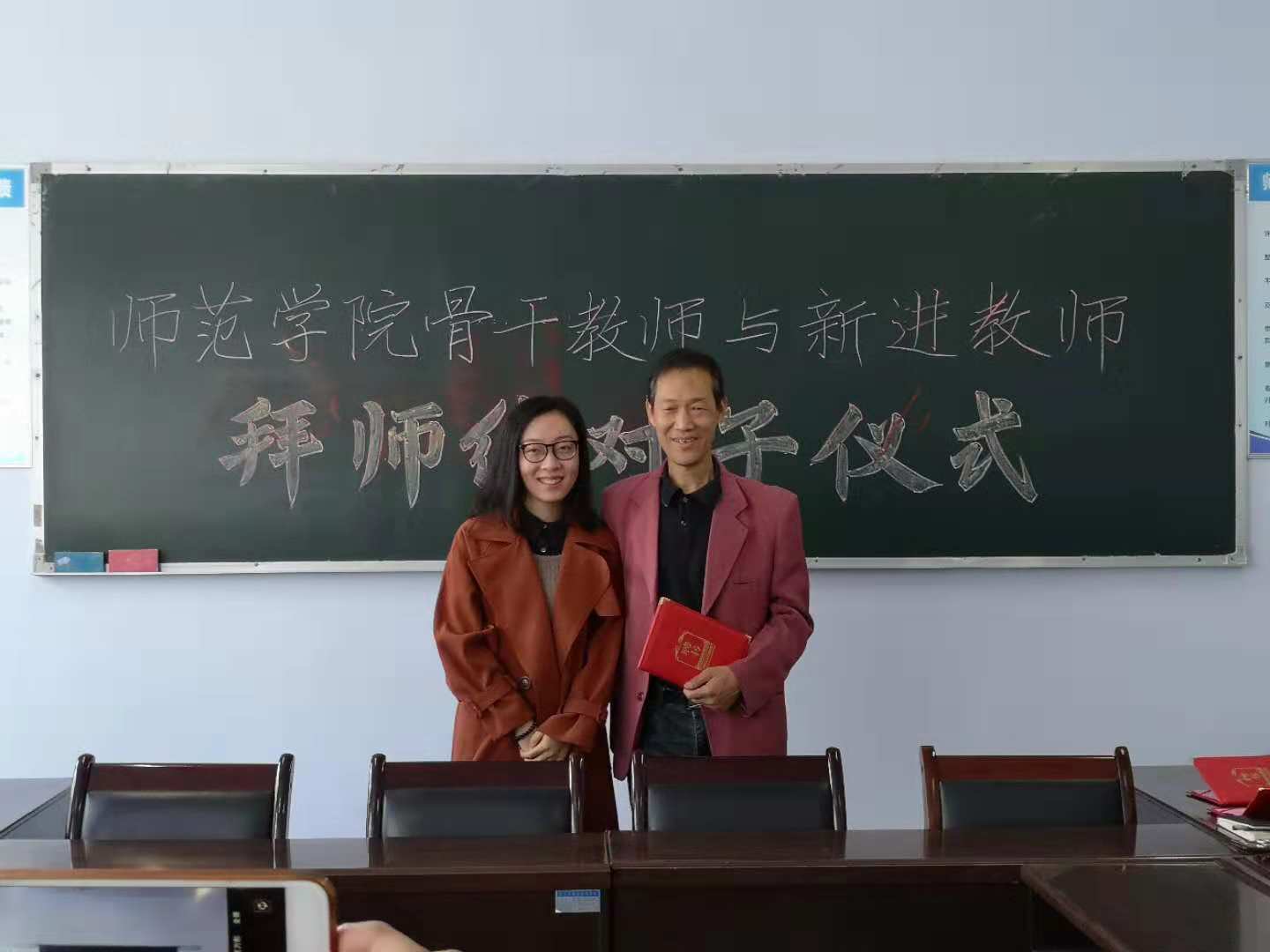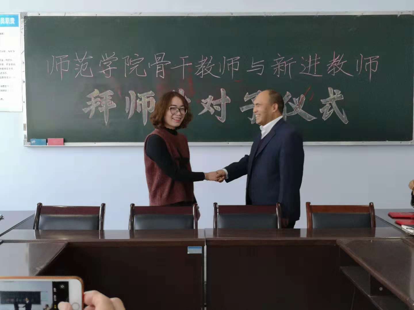 王国峡首先宣读了《yl234112018年“拜师结对子”工作实施方案》,公布了结对子的十对师徒名单;新进教师代表孙亚利,骨干教师代表伍艳妮做了表态发言;之后师徒行拜师礼,分别签订了《师徒结对帮扶协议书》。苑玉洁、王国峡分别为担任指导任务的十位老教师颁发了聘书。