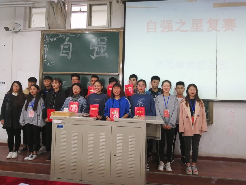2018年10月29日中午,三门峡职业技术学校yl23411于1107教室举办“自强之星”复赛,本次复赛围绕“自立自强、励志成才、报效祖国”的主题进行了广泛而深刻的讨论,参加本次活动的有17.18级团干及所有复赛选手。