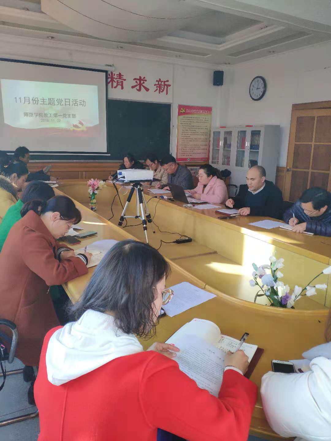 2018年11月22日下午三点,yl23411教工第一党支部在5204党员活动室开展了3+N主题党日活动。支部书记王斐主持活动,yl23411经理苑玉洁及第一支部全体党员参加了活动。