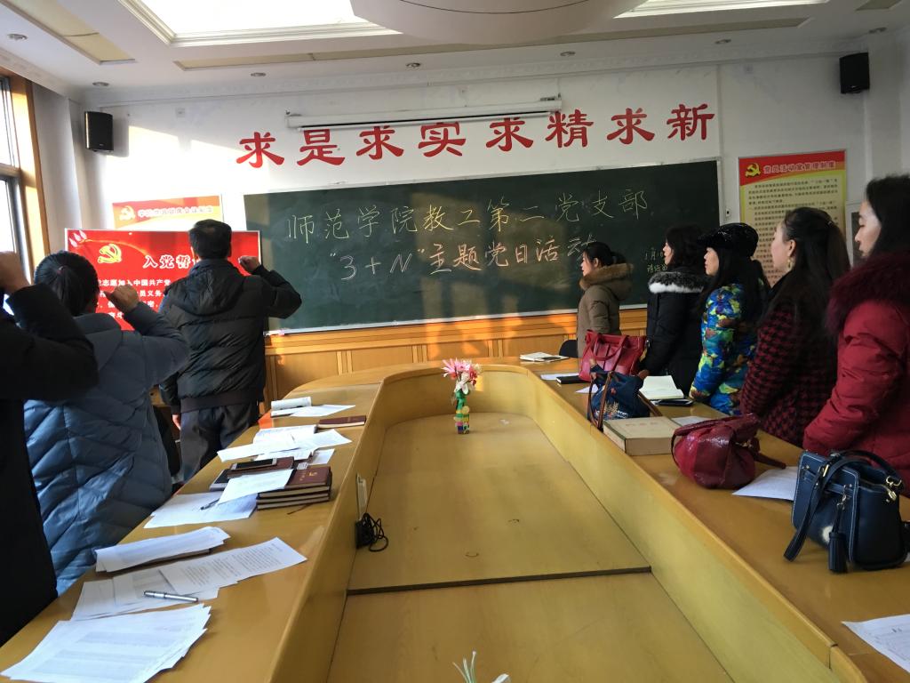 yl23411教工第二党支部于2019年1月18日上午8:30在5204会议室举行2019年一月份“3+N”主题党日活动。会议由教工第二党支部书记张代平同志主持。二支部全体党员参加活动。
