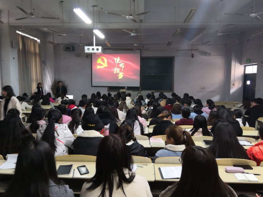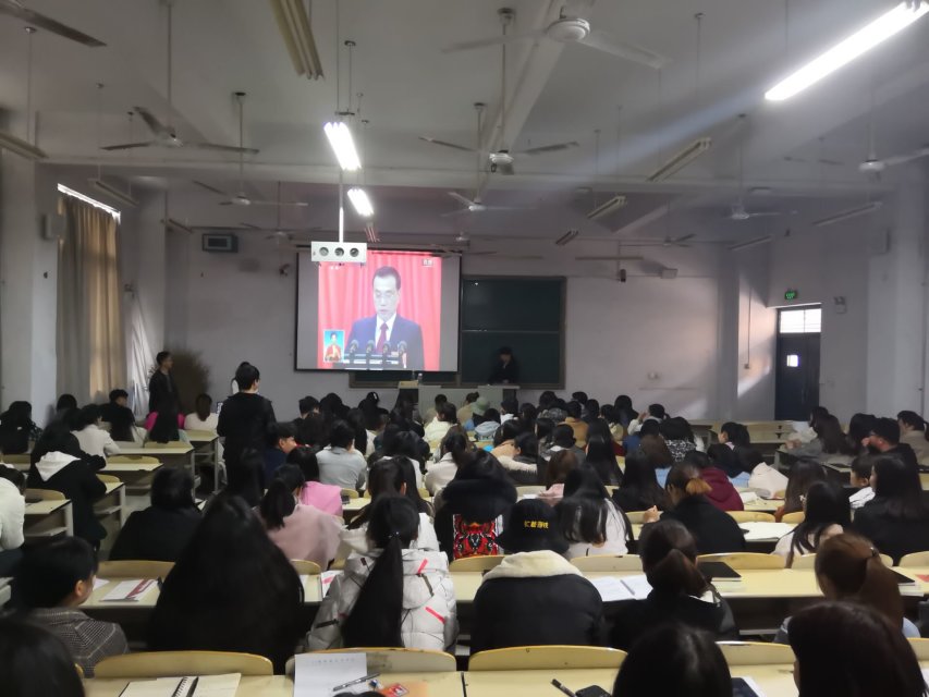 2019年3月6日中午,三门峡职业技术学校yl23411在1209观看有关两会精神视频和宣读内容,参加此次活动的有17、18团干。