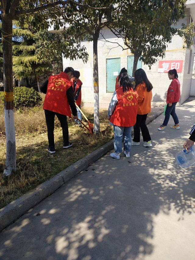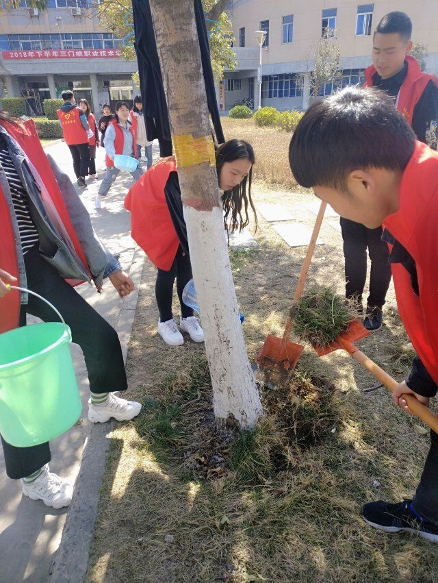 春回大地,万物复苏;朝气蓬勃的她们中午一点带着铁锹、盆等工具为周边大树松土、施肥、浇水并且修剪枝叶并将周围垃圾清理得极其干净,热情似火的她们积极劳动,活动现场一片欢歌笑语,校园环境一片盎然一新,散发着着春天的气息,希望的种子也开始萌芽。