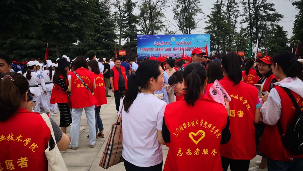 2019年6月5日早上8点,三门峡市黄河公园西门广场已是旗帜飘扬、彩旗飞舞,高音喇叭播放着欢快的乐曲,这里成了一片人的海洋。广场东南角,来自公司党员志愿服务者50余人已聚集在这里,他们身着鲜艳的红色志愿者服装,将参加全市举行的世界环境日活动。