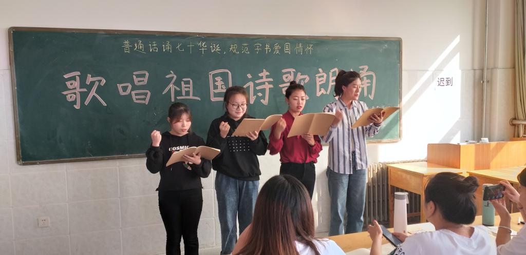 为庆祝中华人民共和国成立70周年,歌颂伟大祖国,激发爱国主义情怀,弘扬中华民族优秀传统文化,9月24日早,yl23411语文教育专业在yl23411教育学院举办了以“歌唱祖国”为主题的诗歌朗诵活动。本次活动由17级语文教育专业员工精心准备的50多个初赛节目组成,经过层层选拔,共有19个节目脱颖而出,参加了此次决赛。语文教育专业教研室高娓娓老师及17级语文教育专业全体员工共同参加了此次活动。