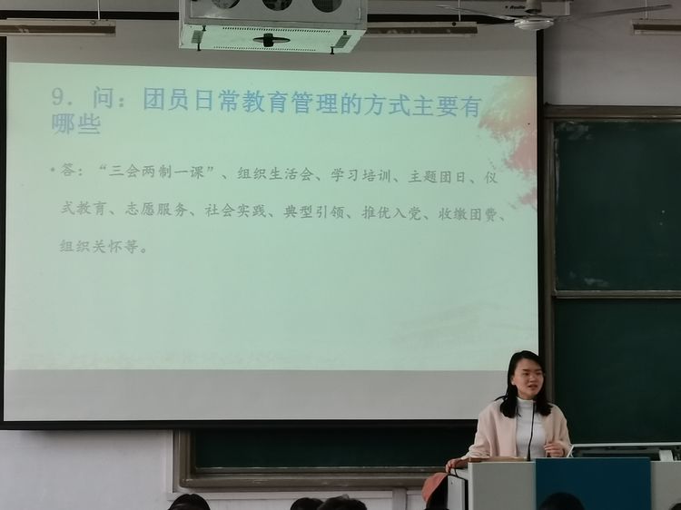 其次老师又展示并讲解了团员教育管理工作100问(第一期)的内容,让团员更深入了解认识工作,更好的开展工作。并希望同学们在以后的工作中能以身作则,率先垂范;虚心请教,积极应对;记录成长,及时反思。