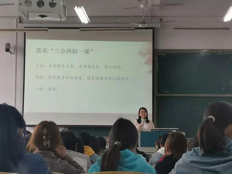 会议主要分为三个方面内容。首先,老师讲解“三会两制一课”内容,明确表示落实“三会两制一课”是共青团保持和增强政治性、先进性的必然要求。希望同学们认真学习青年工作的重要思想,加强团干政治教育和政治训练。