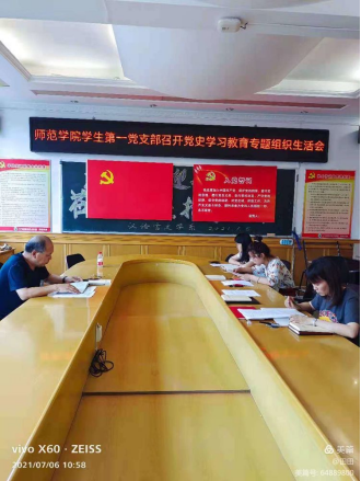 最后,樊卫兵书记就自己学习党史的经验、收获以及存在的问题进行剖析,提出在党史学习上要有规划、有系统,要明确党史观,平时要学会挤时间,利用暑假深入学习党的百年历史,传承党的伟大精神,并在工作中时时反思,事事反思,在反思中促进思想的提高,立足岗位、履职尽责。