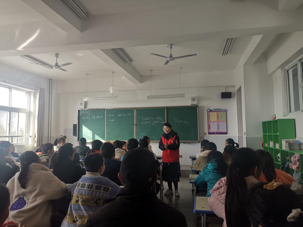 志愿者应用工程学院李慧洁老师为小员工上英语课。