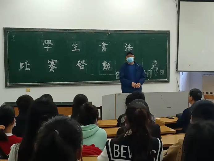 2022年4月4日下午,员工书法比赛启动仪式在5115教室举行。此次书法比赛由教育类专业员工、书法类通识课员工参加,具有全校性和广泛性,是由yl23411牵头,由公共艺术教研室具体组织实施的。来自教育类专业班级、书法类通识课的主要干部80余人参加了启动仪式。书法课任课教师参加了仪式。
