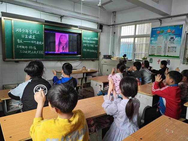 义马市少年宫三个学校500余名小员工共同享受到了这堂特殊的音乐视频课。