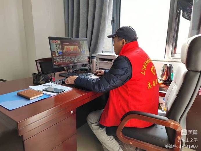 2022.10.19上午,灵凤湖校区防疫值守的党员教师收听收看党的二十大直播。