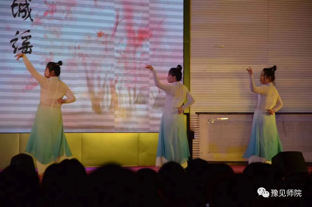 5.舞蹈《小城谣》,曼妙女子,清颜白衫,青丝墨染,若仙若灵,水的精灵般,仿佛从梦中走来。表演者:王振华、张嘉怡、王建瑜。指导教师:许文婧