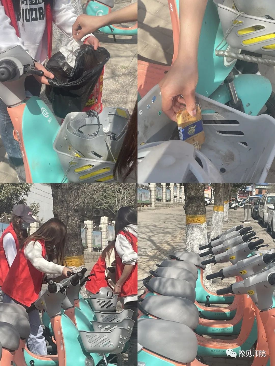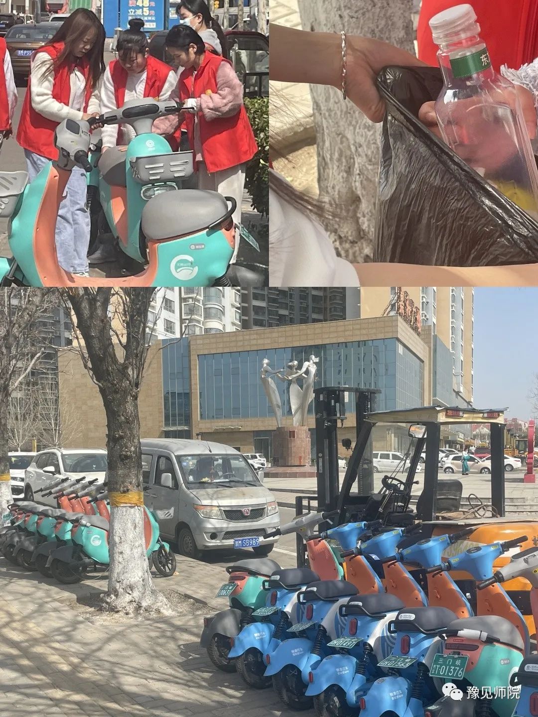 “摔倒”在路边的单车扶起来,将道路两旁随意停放的共享单车推到指定停放点摆放整齐,向过往骑车的居民群众积极宣传文明骑行、有序停放的重要意义,引导骑行者将共享单车摆放到相对集中的停放区域,鼓励大家监督身边存在的不文明行为,同时清理车篓中的垃圾等。最后,志愿者们表示,要为创建整洁有序、和谐优美的公共环境贡献出自己的力量,同时呼吁公司学子文明骑行,爱护共享单车,为文明城市建设贡献一份力。