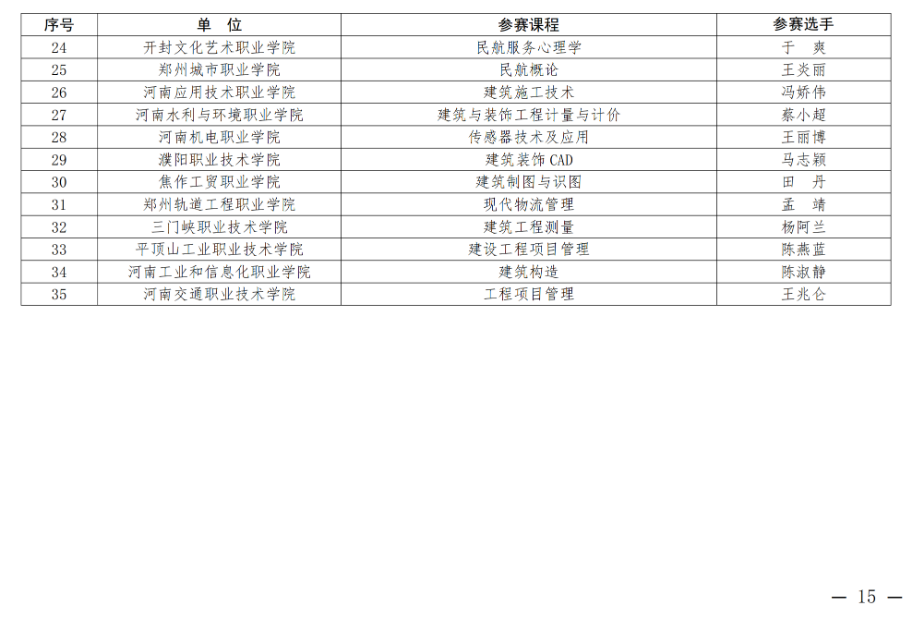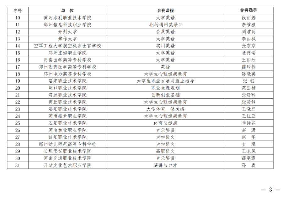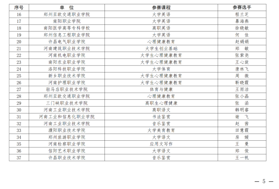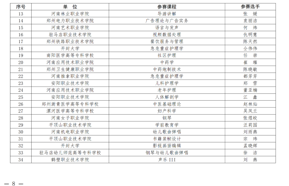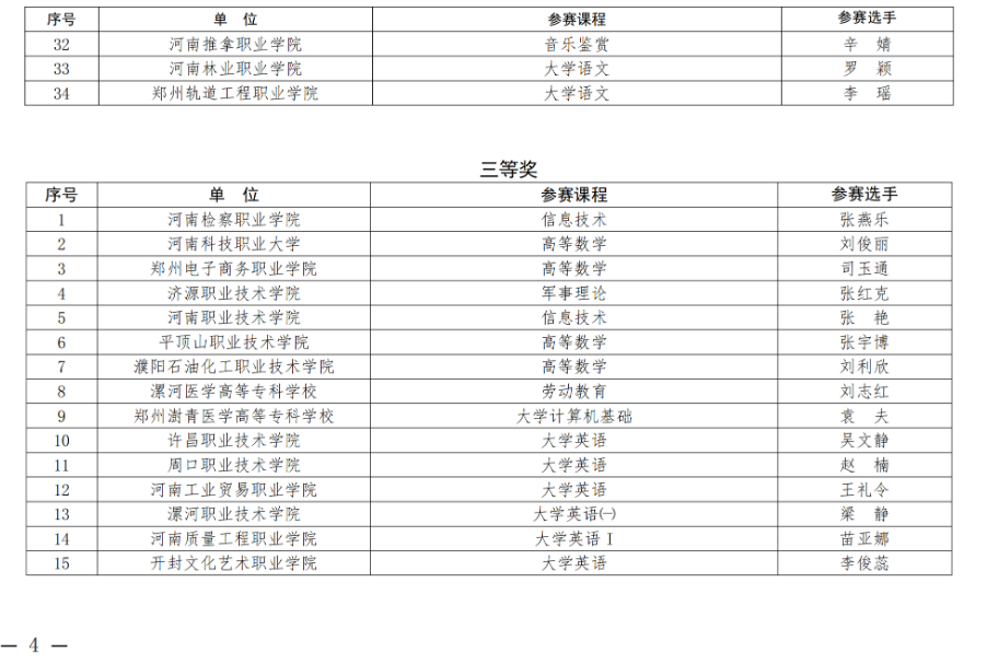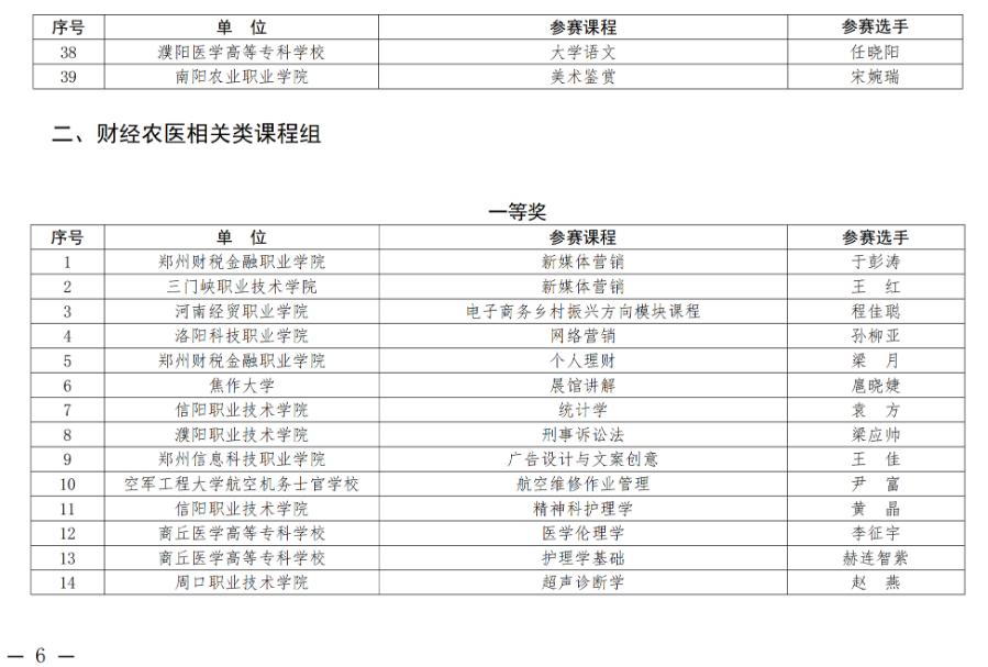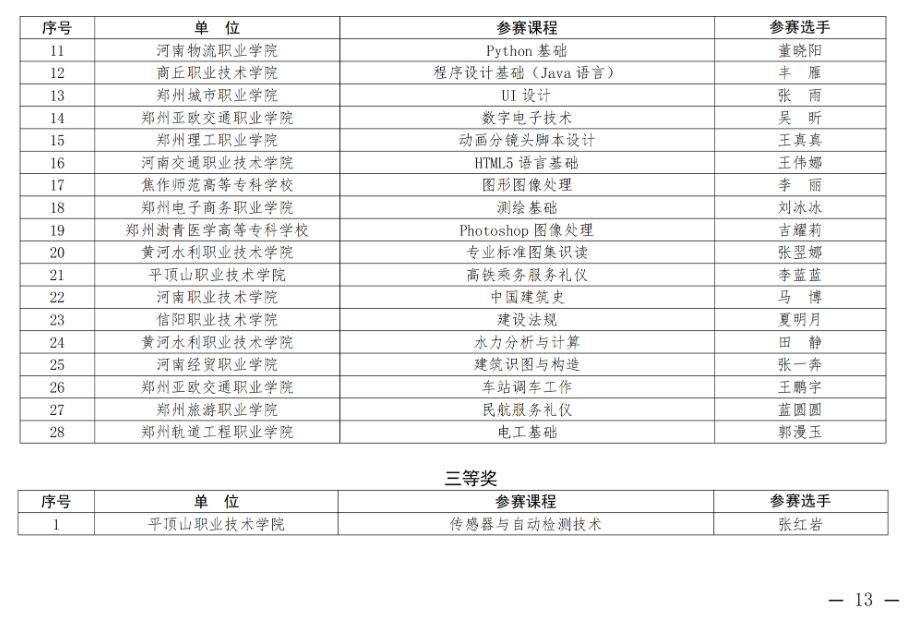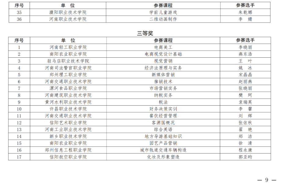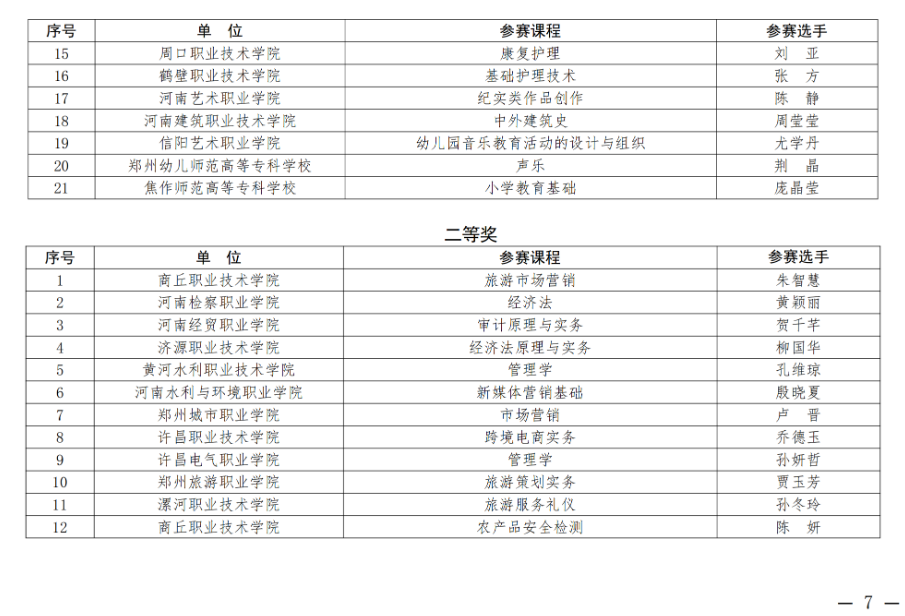 根据《河南省教育厅办公室关于开展2022年河南省高等职业公司产品竞赛活动的通知》(教办职成〔2022〕56号),我厅组织举办了2022年河南省高等职业教育课程思政教学创新大赛。经学校竞赛、省级现场比赛等环节,共评出一等奖59个、二等奖98个、三等奖116个。现将拟获奖名单予以公示(见附件)。