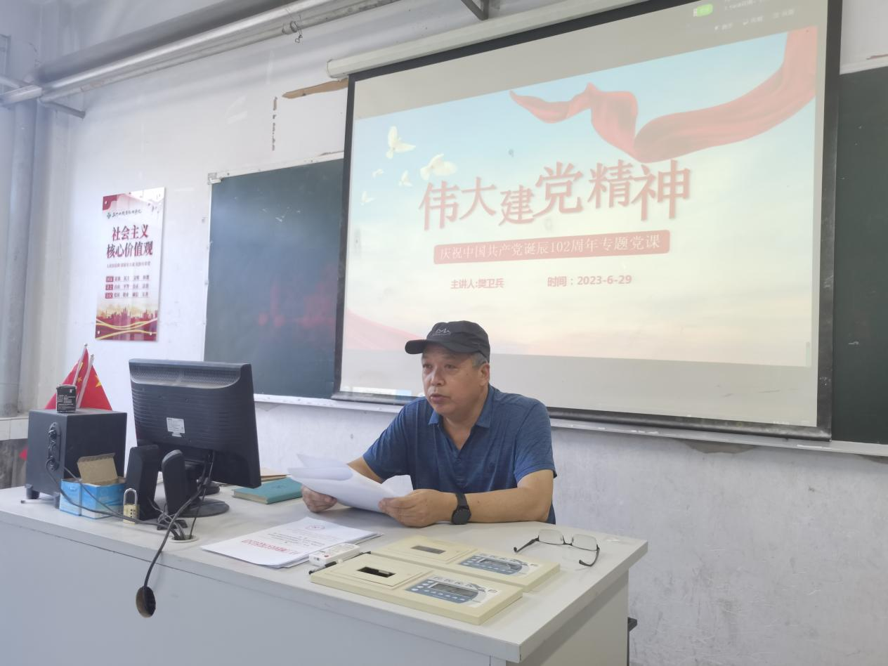 为热烈庆祝中国共产党成立102周年,2023年6月29日下午,yl23411党总支书记樊卫兵在5110教室,讲题为《伟大建党精神内涵解读》的专题党课。yl23411各党支部委员和各教研室主任参加会议。