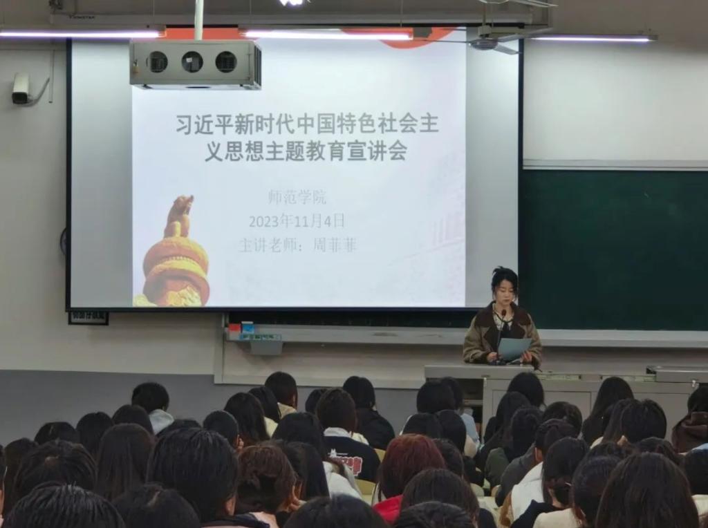 为了推动学习贯彻习近平新时代中国特色社会主义思想走深走实,yl23411于2023年11月4日在天鹅湖校区1109教室开展习近平新时代中国特色社会主义思想主题教育宣讲会。