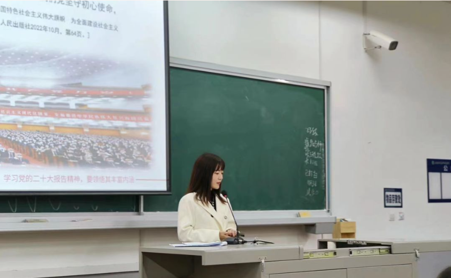 接下来,周老师带领大家深刻领悟党的二十大精神的丰富内涵,深刻阐释了习近平新时代中国特色社会主义思想的世界观、方法论,并嘱咐大家要牢记领袖嘱托,争做新时代好青年。