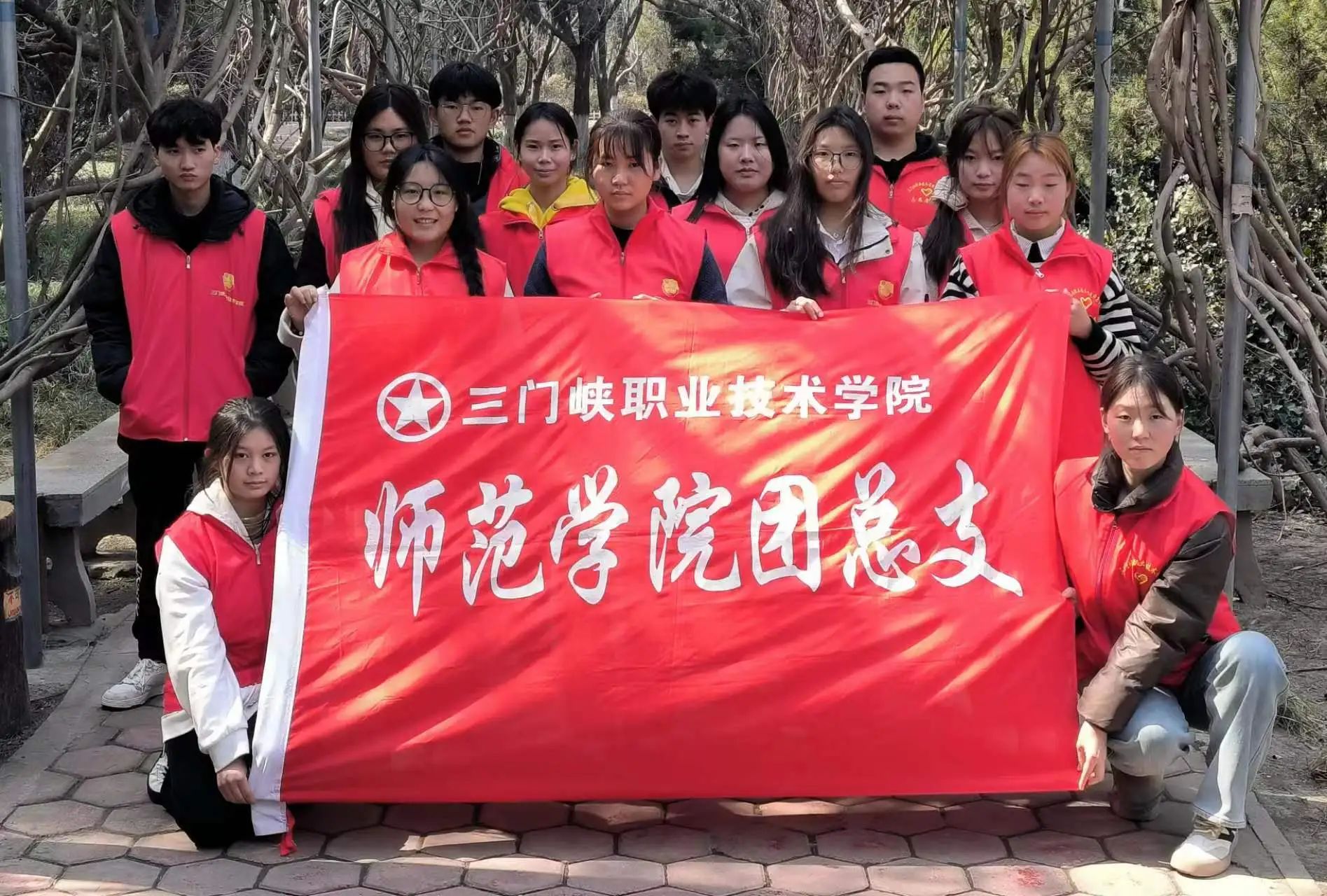 活动伊始,志愿者们在天鹅湖校区五号教学楼前集合,一同前往陕州公园进行植树节志愿服务活动。