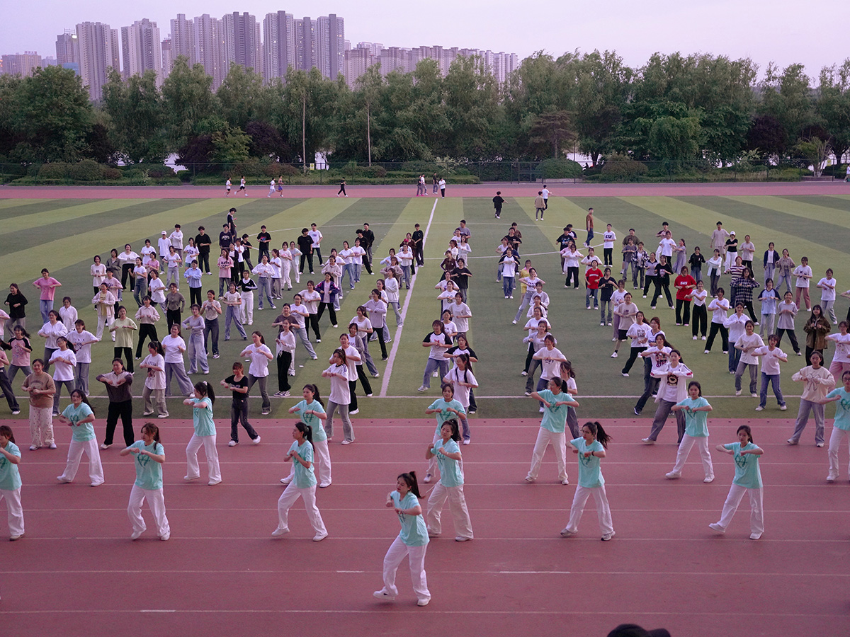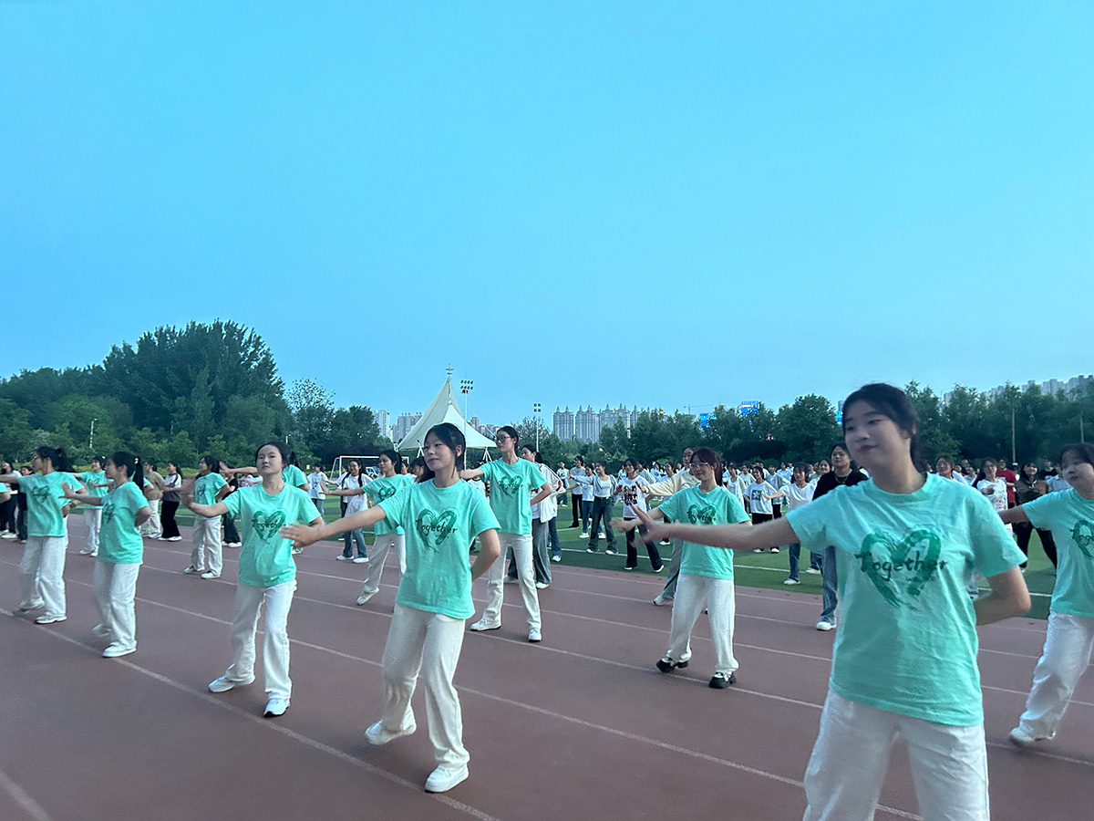 烟花于空中绽放,绚丽多彩;学子们于绿茵场上舞动,盛放青春色彩。舞动青春,放飞梦想,用灵动的舞姿展现青春的朝气。跃动的舞姿是我们青年满载的朝气,动感的音乐展现学子卓然的风采。蓬勃生长、迎风向上,以饱满的热情迸发无限的青春活力。