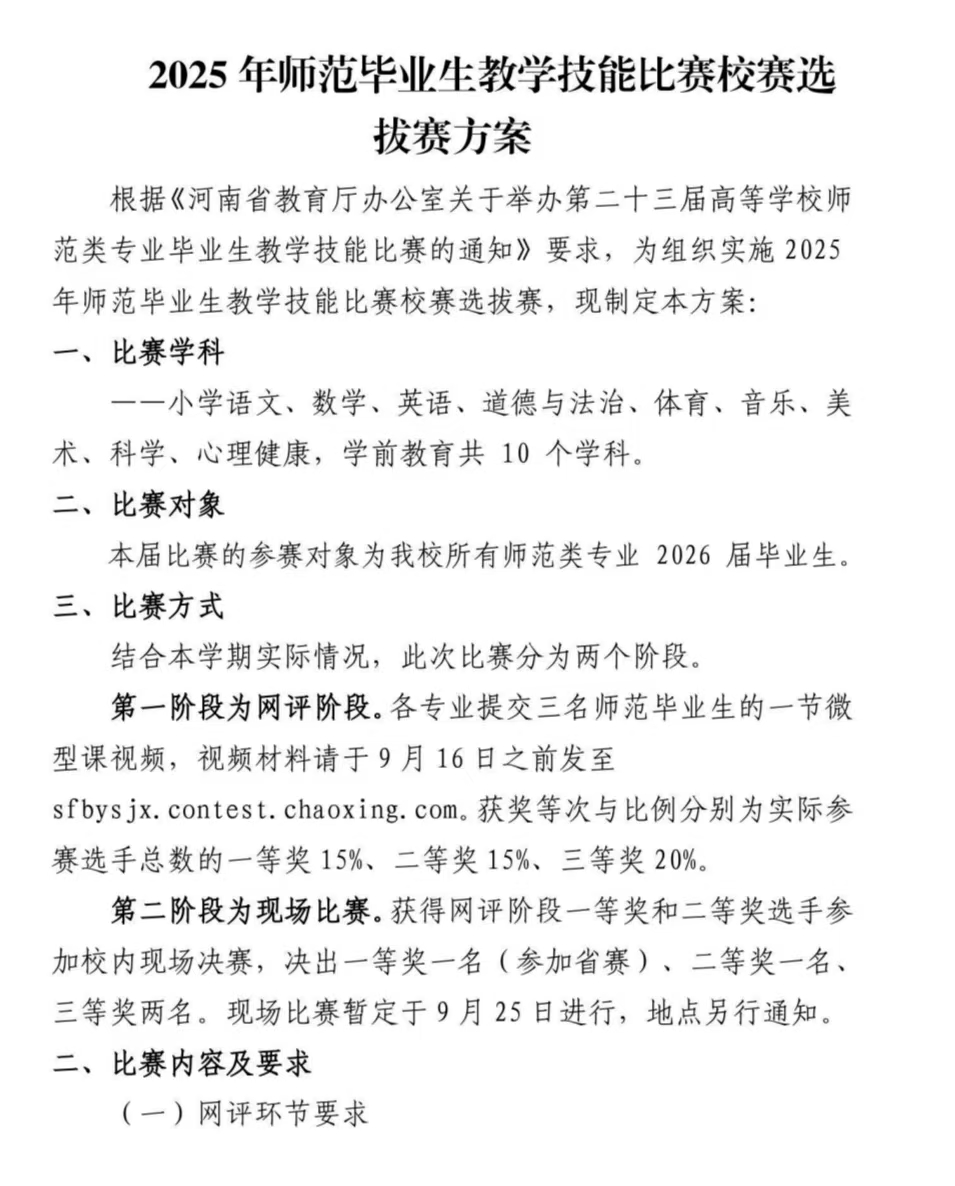 2025年师范毕业生教学技能比赛校赛选拔赛方案