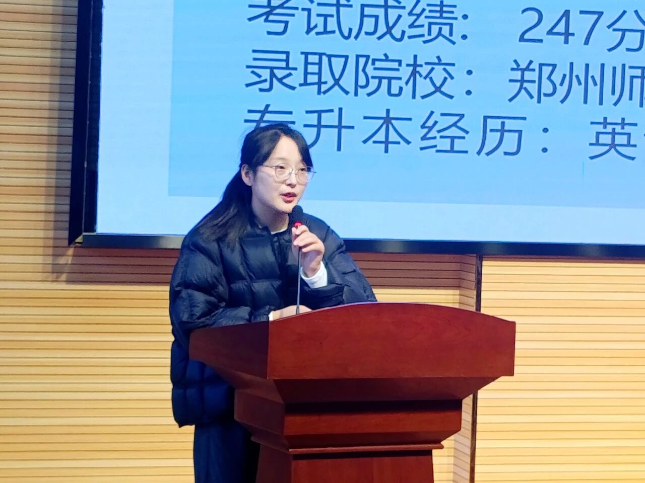 “考试成绩:247分,全省第四名,被郑州yl23411录取。”当这行字出现在大屏幕上时,台下响起了一阵赞叹声。这位来自小学教育专业的学姐,自信地分享着她的专升本经历。“英语学习需要持之以恒,每天积累才能取得理想成绩。”她简洁有力的发言,配以屏幕上清晰呈现的关键信息,让在场同学受益匪浅。随后,她从备考策略、时间规划、心理调节等多个角度,全面剖析了专升本备考的要点和方法。