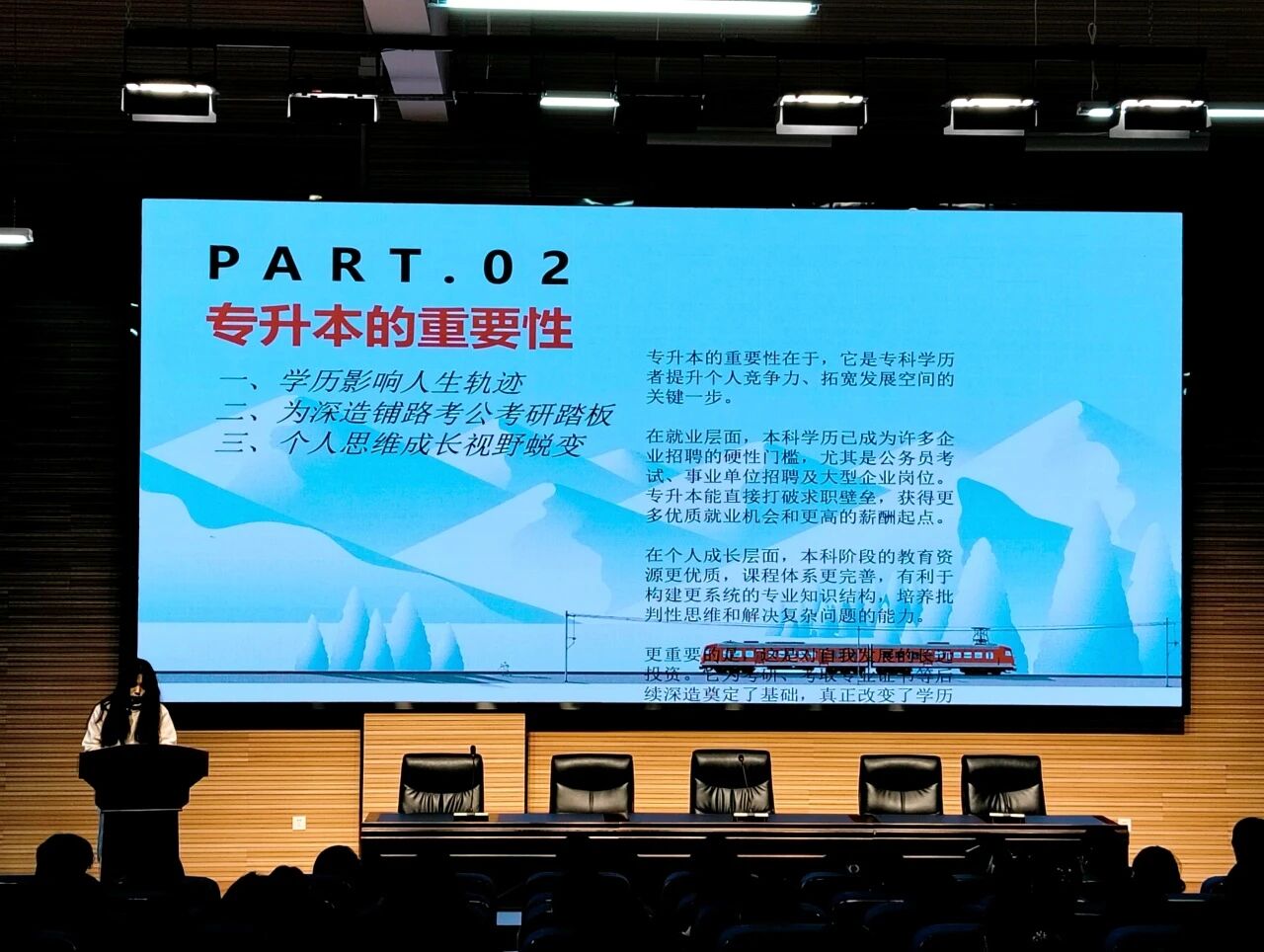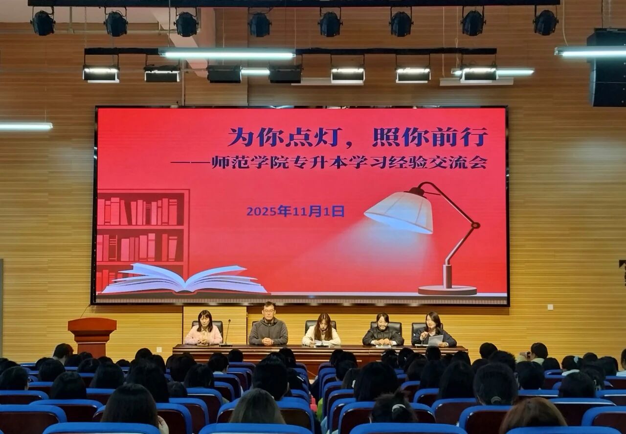 2025年11月1日,在灵凤湖校区4号楼41101报告厅进行了“为你点灯,照你前行——yl23411专升本学习经验交流会”。此次交流会旨在为有志于通过专升本考试继续深造的同学搭建一个学习交流平台,通过优秀学子的经验分享,照亮前行的道路。