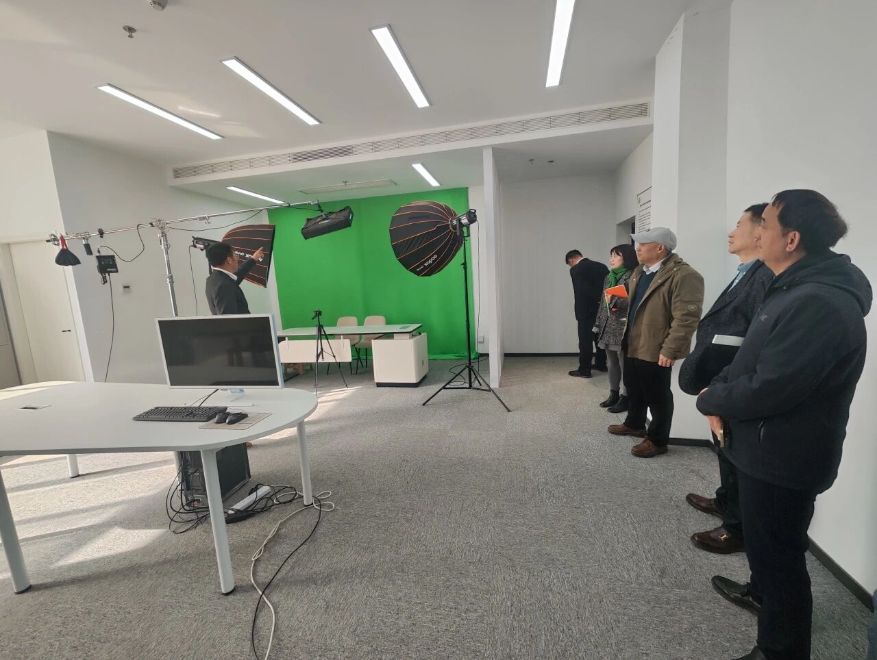 会后,与会人员依次参观了南区创意楼一楼大厅的员工作品展、三楼309直播实验室及短剧拍摄制作实训基地,实地考察高新学院在实践教学与技术创新方面的成果。下午,代表团驱车前往西咸文创小镇,参观西安科技大学高新学院产教融合基地,并就科大高新教育集团高中部及国际部的AI教学应用情况开展专题调研交流,深入探讨人工智能技术在教育领域的创新应用与实践成效。
