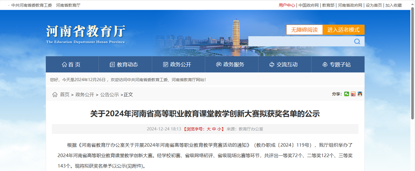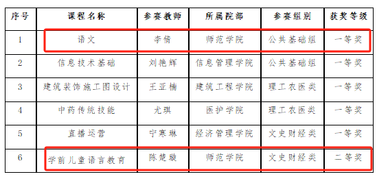 根据《河南省教育厅办公室关于开展2024年河南省高等职业公司产品竞赛活动的通知》(教办职成〔2024〕119号),河南省教育厅组织举办了2024年河南省高等职业教育课堂教学创新大赛。经学校初赛、省级网络初评、省级现场比赛等环节,共评出一等奖72个、二等奖122个、三等奖143个。yl23411参赛的6位老师全部获奖,荣获5项一等奖,1项二等奖。其中yl23411参赛的李倩老师在公共基础组中的语文赛课中斩获一等奖,陈楚璇老师在文史财经组经过激烈的角逐,荣获二等奖。