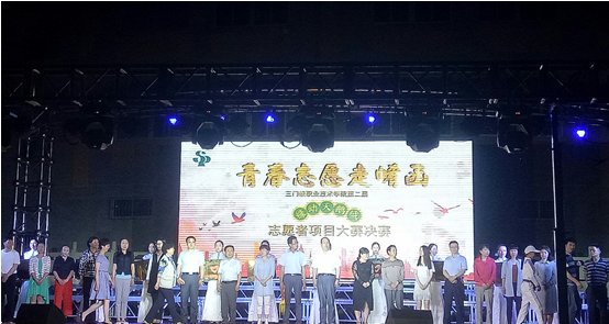 大赛在一段舞蹈与各院部旗帜的展示及各院部志愿队队长在郭程程老师带领庄严的宣誓下开始。经过前期初赛、复赛层层选拔,各院部共7支代表队进入决赛,各院部项目负责人纷纷讲述他们的志愿服务项目。其中,公司七彩童年志愿服务队进入决赛,在项目负责人李浩讲述公司志愿者长期开展关爱留守儿童的帮扶事迹,活动现场,受助学校卢氏县徐家湾中学18名师生代表来到现场向公司送来感谢锦旗,并表演了精彩的节目;活动期间,公司师生带来歌曲《追寻》、《好人就在身边》以及舞蹈《向快乐出发》等精彩的文艺节目,赢得了现场观众的阵阵掌声。晚会现场,三门峡市老年护理院、三门峡湖滨区老年护理中心、三门峡市老年服务中心、三门峡市湖滨区车站街道养老康复中心、三门峡湖滨区颐康养老服务中心、三门峡市天鹅湖风景区、三门峡市黄河湿地公园、三门峡市虢国博物馆、三门峡卢氏县徐家湾中学、三门峡市社会福利院十家单位分别成为公司青年志愿服务站点,与会领导为各院部与对接单位举行授牌仪式。经过紧张激烈的比赛和现场评委公平公正的打分,最终公司七彩童年志愿服务队获得三等奖。
