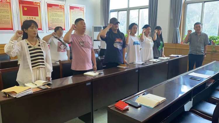 会议第一项,重温入党誓词。领誓人:李俊凯。