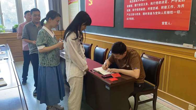 会议第二项,交纳五月份党费,填写《党费证》,并在党费交纳统计表上签字。