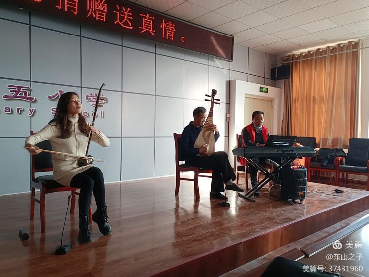 志愿者张满升、张国祯、张茜老师为小员工表演民乐合奏《赛马》。