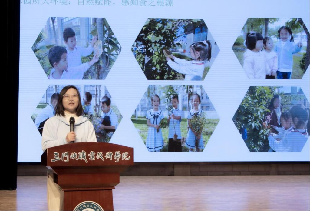 在专题分享环节,甘棠幼儿园副园长曲小珊首先作了题为《食育润心启智 美味滋养成长》的主题报告。她系统介绍了该园食育课程的核心理念、实施路径与阶段成果,展现了食育如何从理念渗透到幼儿每日生活,实现“润物细无声”的教育效果,为在座师生提供了兼具系统性与操作性的实践范例。