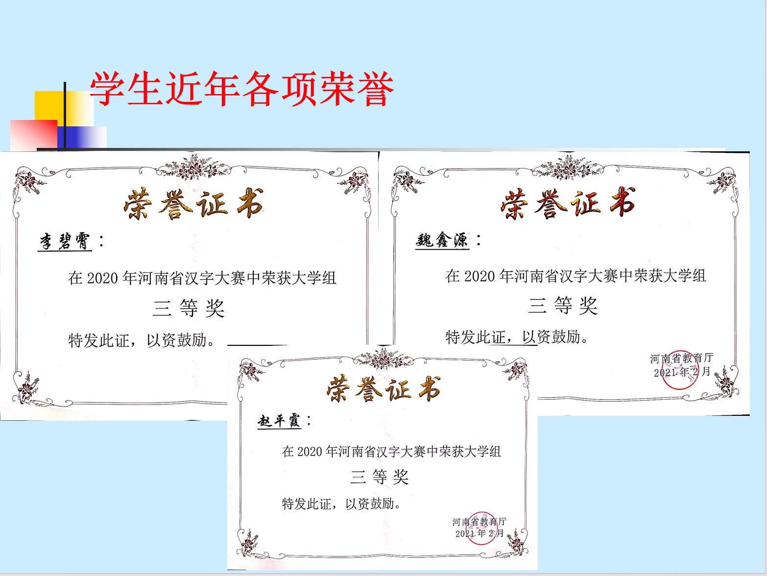 取得荣誉