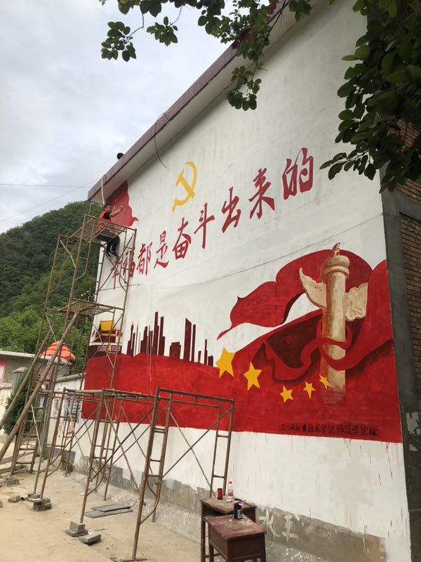 2018年6月6日至8日,公司送教下乡活动在徐家湾如期举行。艺术设计专业师生积极响应公司党总支号召,参加了本次活动,并在活动中承担了徐家湾桐木沟村脱贫攻坚墙体的彩绘项目。