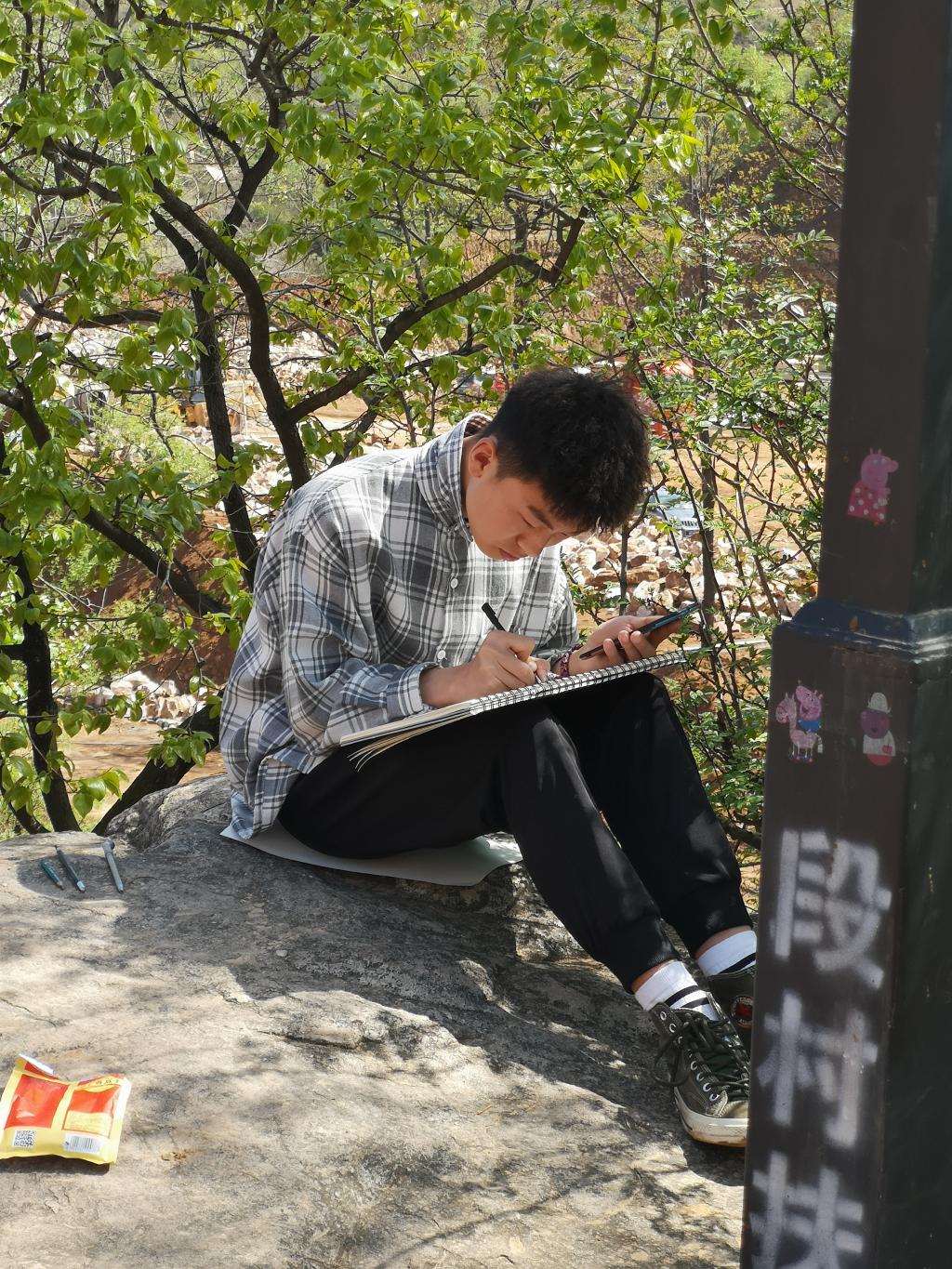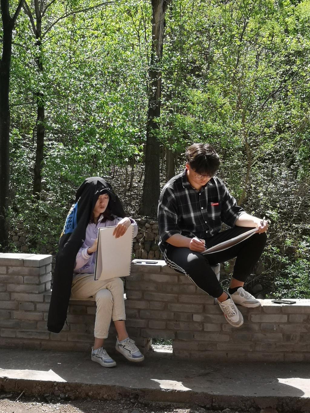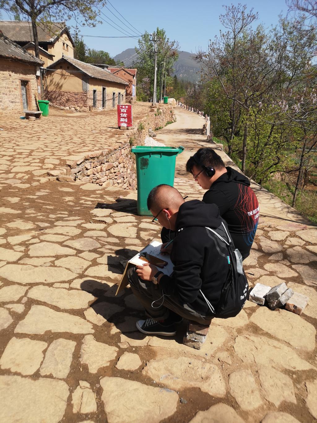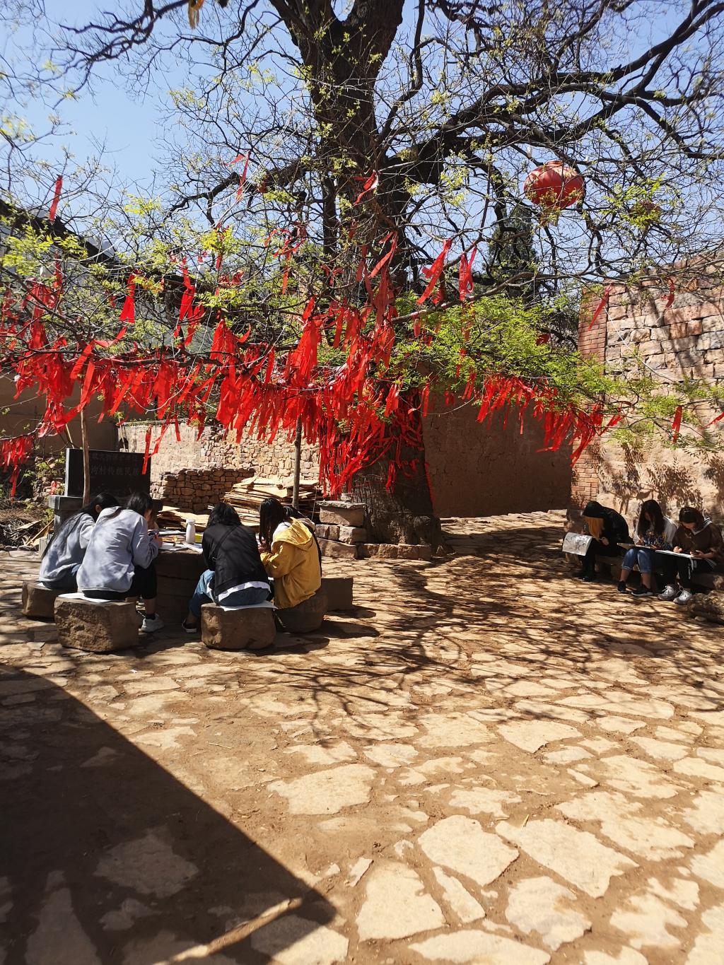 4月15日,历时两个半小时的车程,我们到达了本次写生的目的地- 赵沟古村,初见小村落一切都那么的新奇且美好。一到古村同学们就迅速投入到了写生创作中来。