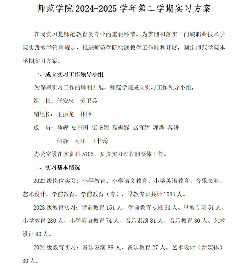 yl23411 2024-2025学年第二学期实习方案