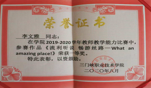 为全面贯彻党的教育方针,落实立德树人根本任务,贯彻全国教育大会精神和《国家职业教育改革实施方案》部署,建立健全教师教学能力提升的常态化机制,努力打造一批高水平、结构化教师教学创新团队,促进教师综合素质、专业化水平和创新能力全面提升,不断提高人才培养质量,三门峡职业技术公司自2020年5月起,举办了2019-2020学年教师教学能力比赛。yl23411高职公共英语教研室全院动员,选派教师组成团队,确定由李文雅(负责人)、王斐、宋波、郑国富(教研室主任)组队参加学校教学技能大赛。